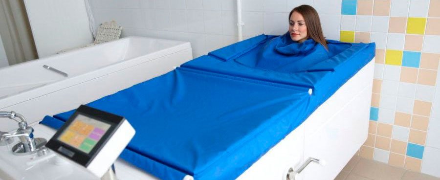 - грязевая аппликация (один вид в зависимости от проблемной зоны – «воротниковая зона», «перчатки», «носки», «локтевые суставы», «плечевые суставы», « коленные суставы», «высокие перчатки», «высокий сапог», «лента вдоль позвоночника», «полукорсет» (спина или грудь), «пояснично-крестцовый отдел», «тазобедренный сустав (один)»