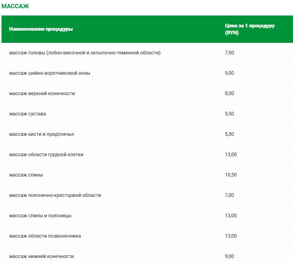 Прейскурант цен на платные медицинские услуги в санатории «Солнечный»