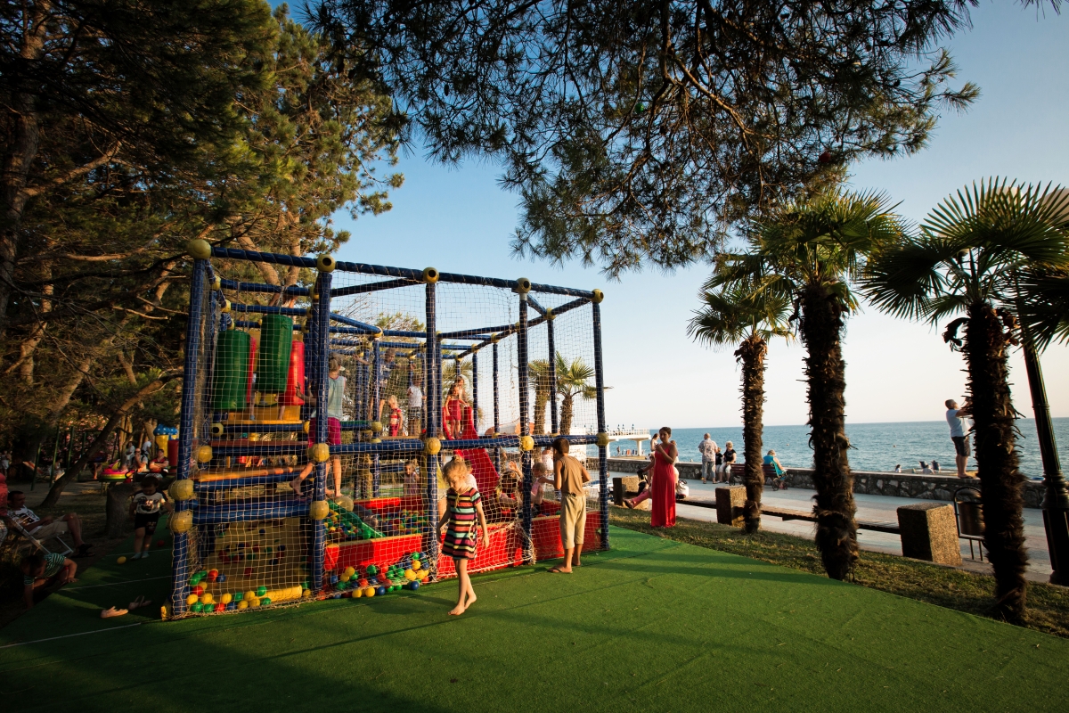 28) пляж: собственный галечный оборудованный пляж шириной 375 м. На пляже есть кабинки для переодевания, летние душевые кабинки, мужской и женский аэрарии, пляжные зонты и шезлонги. Около пляжа — лодочная станция, где напрокат можно взять катамаран.